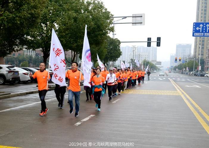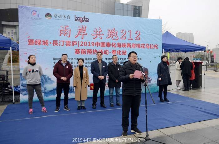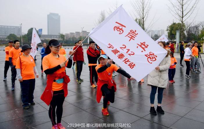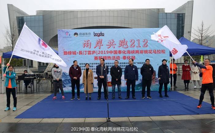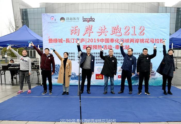 以“桃之缘,乡之恋”为主题的中国·奉化海峡两岸桃花马拉松已经成功举办了三届,深得两岸跑友的喜爱,第四届“桃花马”将于3月24日举行,赛事组委会在赛前推出的“两岸共跑212”活动,使两岸人民的亲情、友情更上一层楼,为促进两岸民间体育文化交流做出贡献。今天(2月12日)上午,“两岸共跑212”暨绿城·長汀雲庐|2019中国•奉化海峡两岸桃花马拉松赛前预热活动(奉化站)开跑仪式在奉化体育馆南广场举行。共有来自国内外和台湾地区的2800余名线上和600余名线下选手参加了本次“两岸共跑212”暨绿城·長汀雲庐|2019中国•奉化海峡两岸桃花马拉松赛前预热活动。