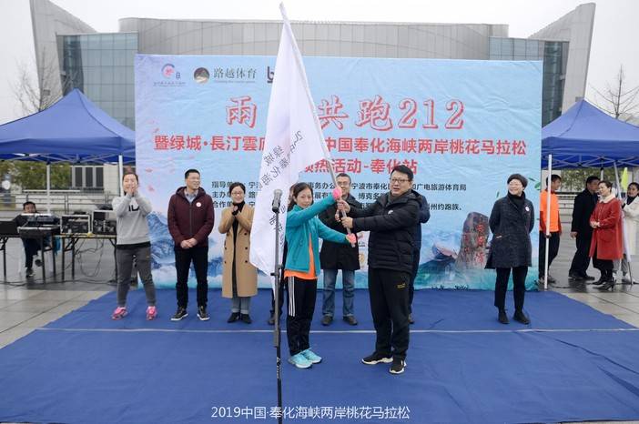 宁波市台湾事务办公室副主任顾海飞,区台湾事务办公室主任应丰杰,区文化和广电旅游体育局局长柳一兵,区台湾事务办公室副主任胡银儿,区文化和广电旅游体育局副局长王建明,区大型活动办公室副主任傅娜等领导和嘉宾应邀参加了此次开跑仪式,并为跑友代表授“2019奉化桃花马”赛旗和“两岸共跑212”活动旗帜。