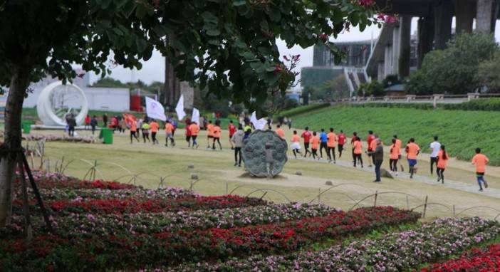 活动现场氛围浓烈,简单的启动仪式后,“两岸共跑212”福州站的活动也随之开展。马骧先生、池炎铭先生、曹甲帅先生共同举枪发令,跑友代表持活动标志赛旗,带领福州的50位跑友沿滨江步道共同完成9.9公里跑步活动。