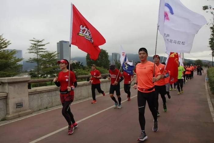 今天(2月16日)上午,“两岸共跑212”暨绿城·長汀雲庐 | 2019奉化海峡两岸桃花马拉松赛前预热活动(福州站)赛旗传递仪式在福州闽江河畔举行。共有来自福州地区50余名选手参加了本次“两岸共跑212”福州站活动。路越体育项目经理马骧先生,福州约跑族理事会理事池炎铭先生,福州约跑族理事会理事曹甲帅先生应邀参加了此次开跑仪式,由赛事主办方代表-路越体育项目经理马骧先生向福州跑友代表授予“两岸共跑212”活动旗帜和“绿城·長汀雲庐| 2019奉化海峡两岸桃花马拉松”赛旗。
