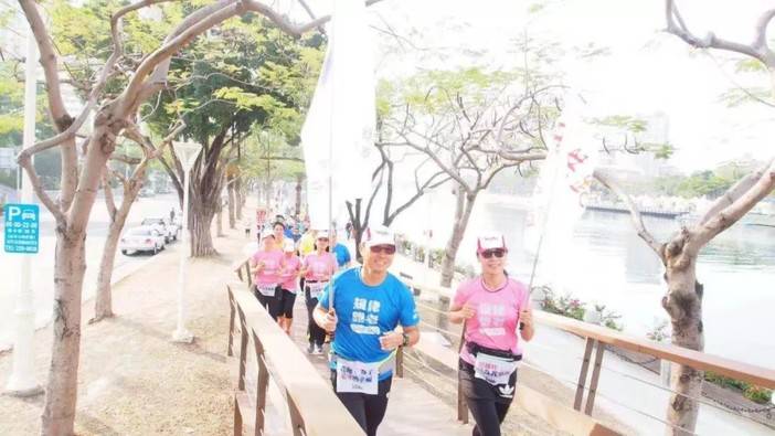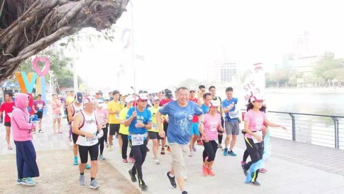 在简单的热身运动后,跑友代表持活动标志赛旗,带领高雄的80余位跑友沿爱河步道共同完成9.9公里跑步活动,开启在高雄市的奔跑旅程!