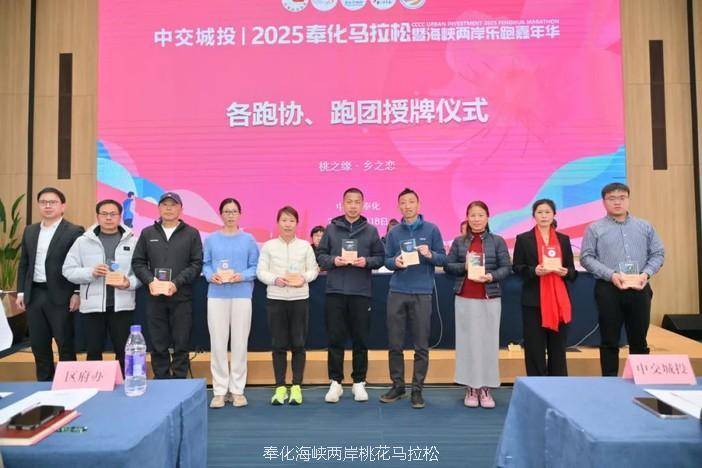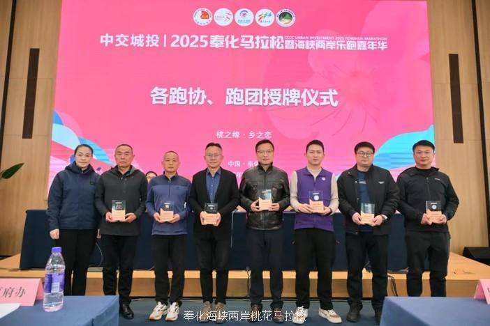 宁波市奉化区文化和广电旅游体育局局长王艳儿为宁波市户外运动协会、宁波市长跑协会、奉化户外运动协会、鄞州长跑协会、镇海区马拉松及路跑协会、慈溪市长跑协会、余姚市长跑协会、海曙区户外运动协会代表颁发荣誉牌匾