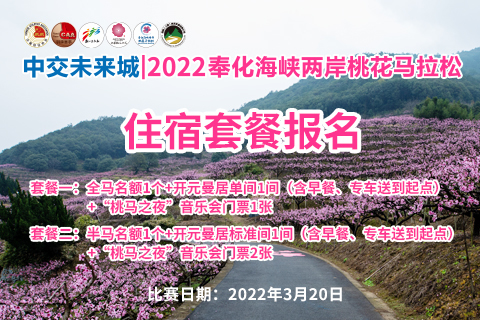 套餐一:全马票1张+开元曼居臻选酒店单间1间(含早餐、专车送至起点)+“桃马之夜”音乐会门票1张。